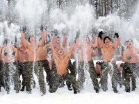 O frio parece não afetar estes soldados da Coreia do Sul, apesar das temperaturas rigorosas.