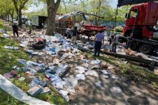 Para além do tempo que demorou a chegar uma grua para levantar o atrelado do camião (só ao fim da manhã), foi preciso fazer a trasfega dacarga espalhada na berma: desde revistas masculinas "Penthouse", a medicamentos, passando por fraldas, champôs e copos de champanhe. Poucos se salvaram.